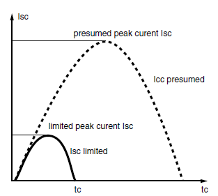 limited peak current Ic according to rms strength of the prospective short-circuit current Ip