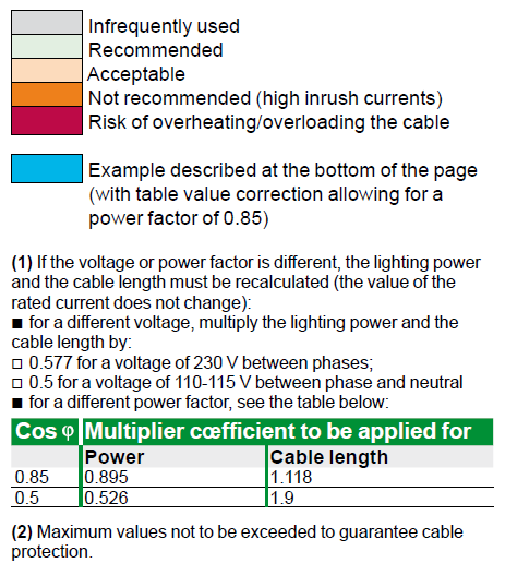 Correction of the values in the table for the maximum cable length to take the power factor into consideration: